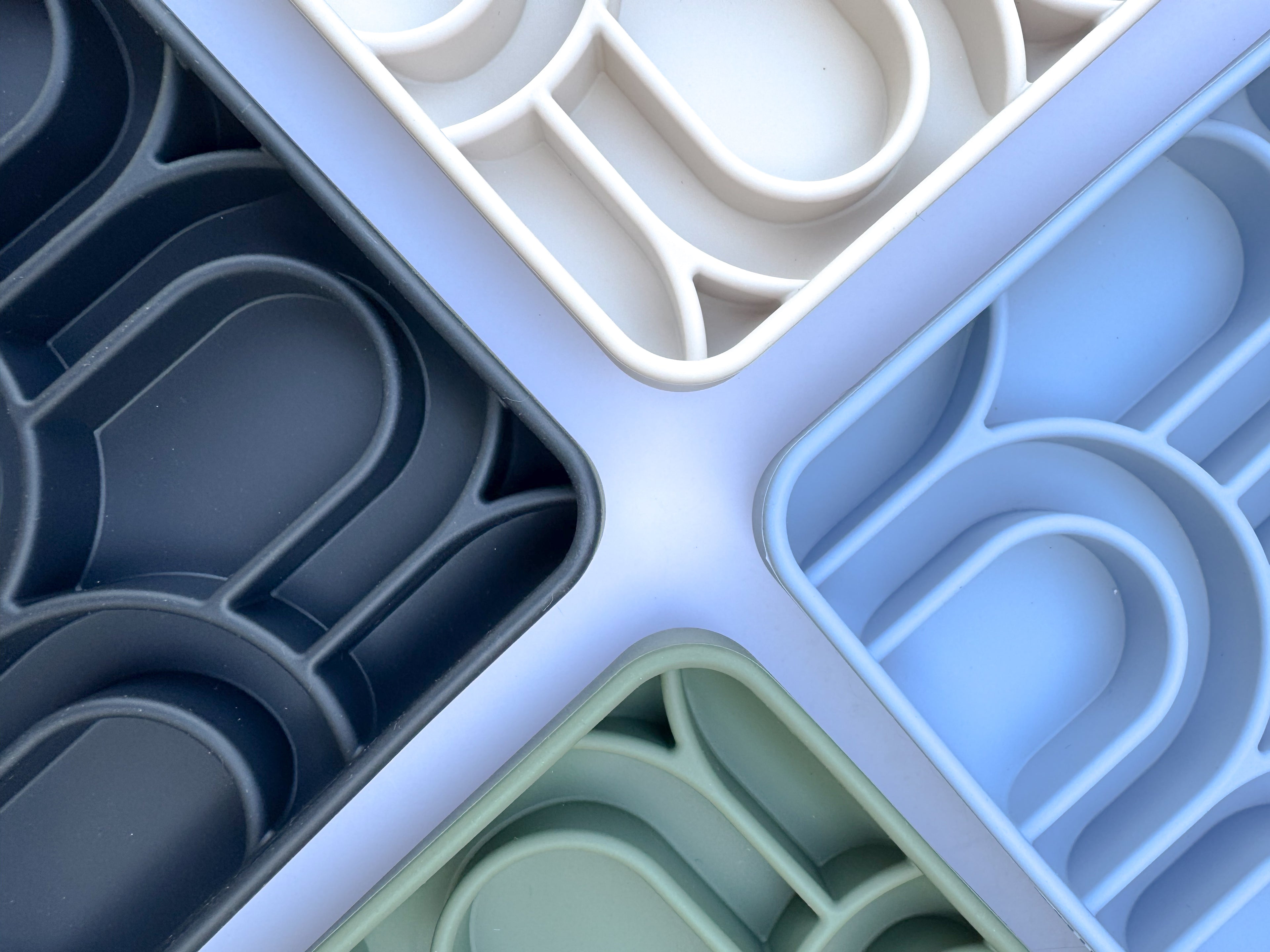 The design of this feeder makes it easy to feed different size pups and is great for any pretty enrichment meals with the elegant pattern! Love the color options, perfect for winter.