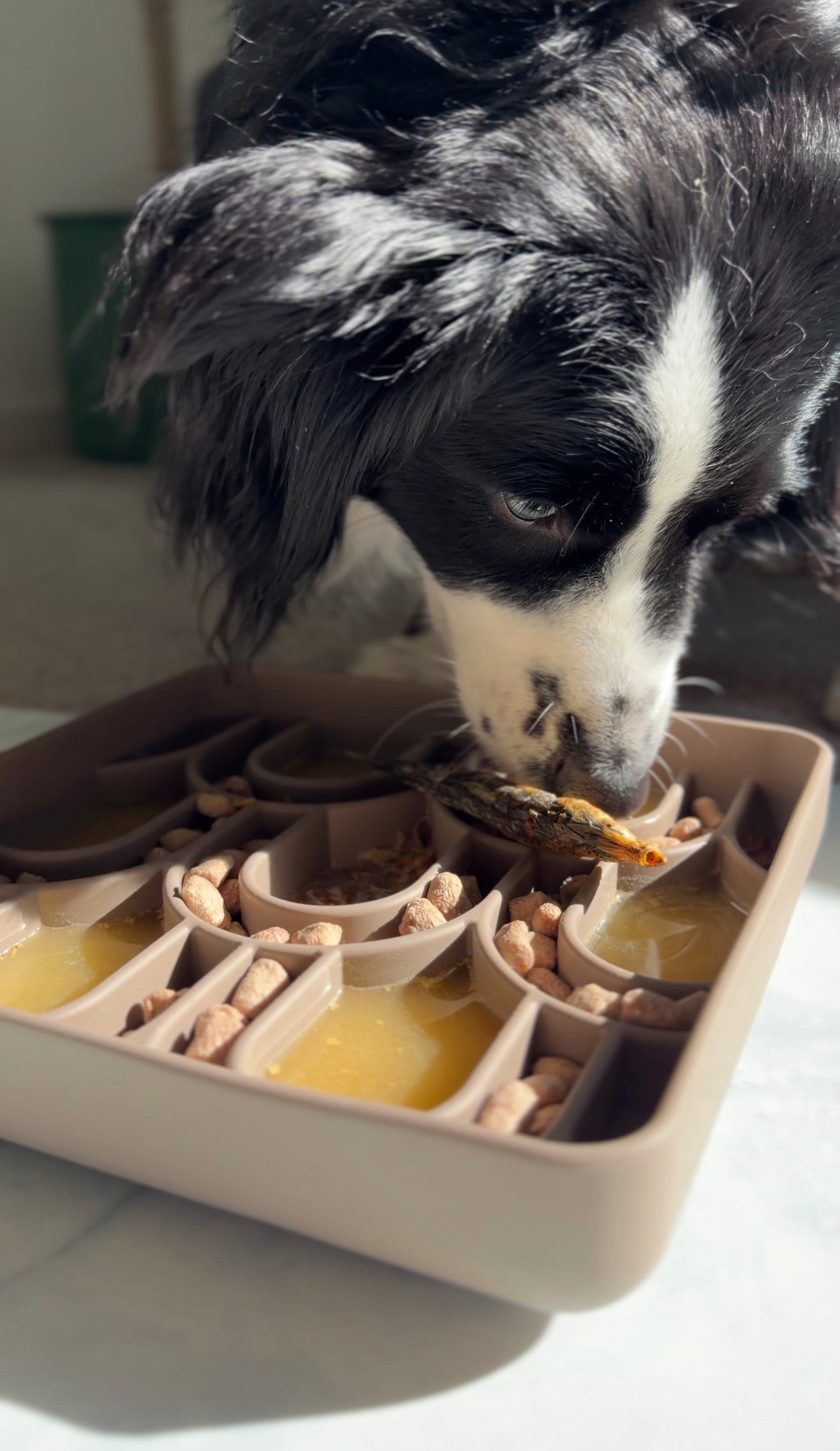 The design of this feeder makes it easy to feed different size pups and is great for any pretty enrichment meals with the elegant pattern! Love the color options, perfect for winter.