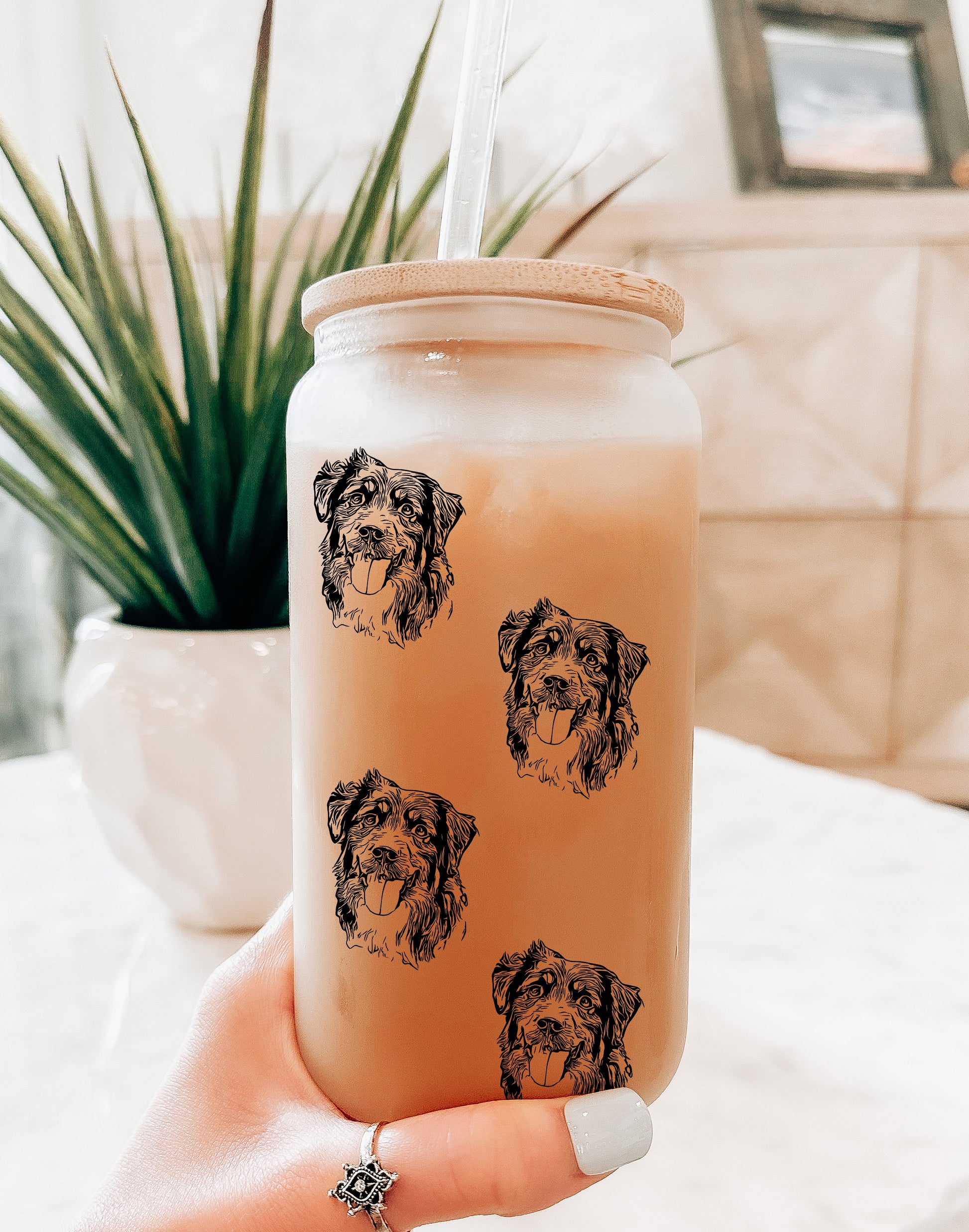 Dog Drawing Wrap Glass Can Cup